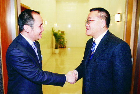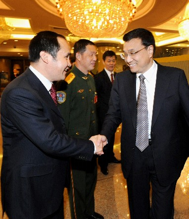 more>>中共中央政治局常委、政協主席賈慶林與董事長徐頂峰親切合影
